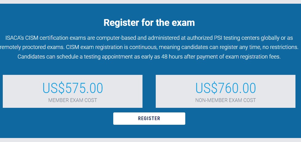 A8 ISACA米国本部のRegisterページにアクセスする 【Register】ボタンを押すと、受験登録が始まる。 ![]() |
